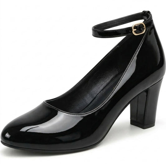 Womens Ladies Block Heel Ankle Strap Work Court Evening Dress Girls Shoes Pumps