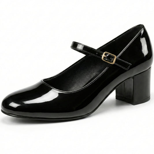 Women’s Elegant Signature Mary Jane Low Mid-Block Heels Pumps Cushioned Comfort Ankle Strap Court Shoes Wide & Extra Wide Fit
