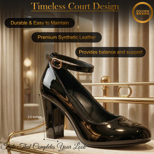 Womens Ladies Block Heel Ankle Strap Work Court Evening Dress Girls Shoes Pumps