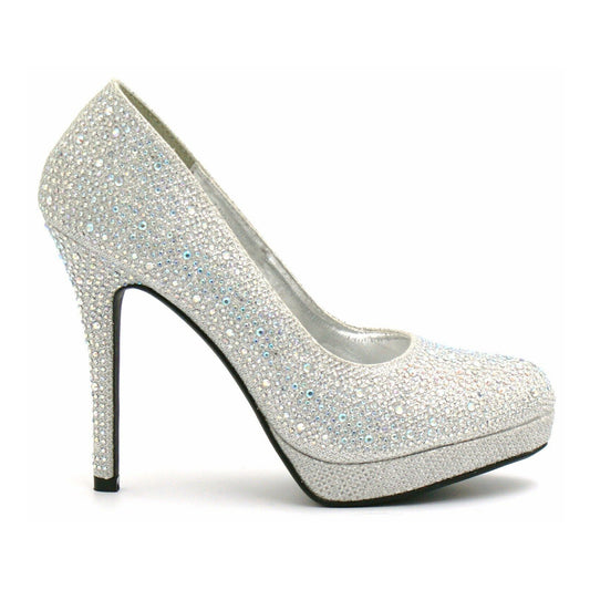 Ladies women high heel diamante court shoes sparkly party bridal wedding shoe